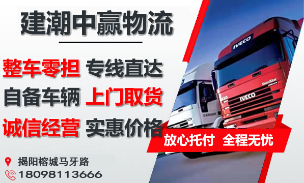 3、揭阳到六安物流专线价格优惠、运货及时,欢迎来人来电咨询揭阳到六安的物流价格、运费和报价等相关问题,建潮中赢物流将全力为您提供合理的运输方案。